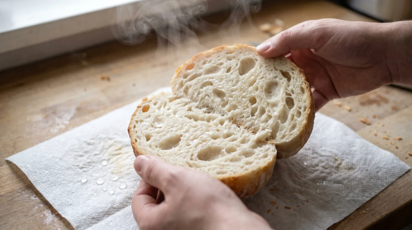 Genom att byta synsätt från att följa gamla köksregler till att faktiskt förstå systemet, kan du väcka brödets slumrande inkråm. En fuktig pappershandduk i kombination med mikrovågsugnens intensiva, penetrerande värme fungerar som en direktinjektion av energi. Strålningen får vattenmolekylerna i den fuktiga handduken att förångas omedelbart, vilket tvingar stärkelsekristallerna att slappna av och suga åt sig fukten på nytt.