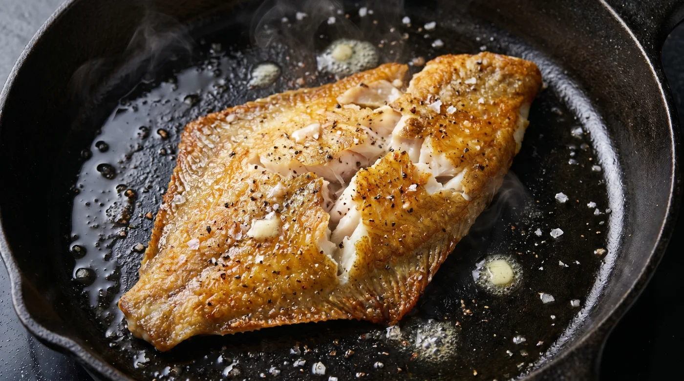 - Temperera pannan varsamt: Låt stekpannan successivt nå medelvärme. Smöret ska först brusa upp, sedan tystna och dofta lätt av rostad kola innan fisken varsamt läggs ner.