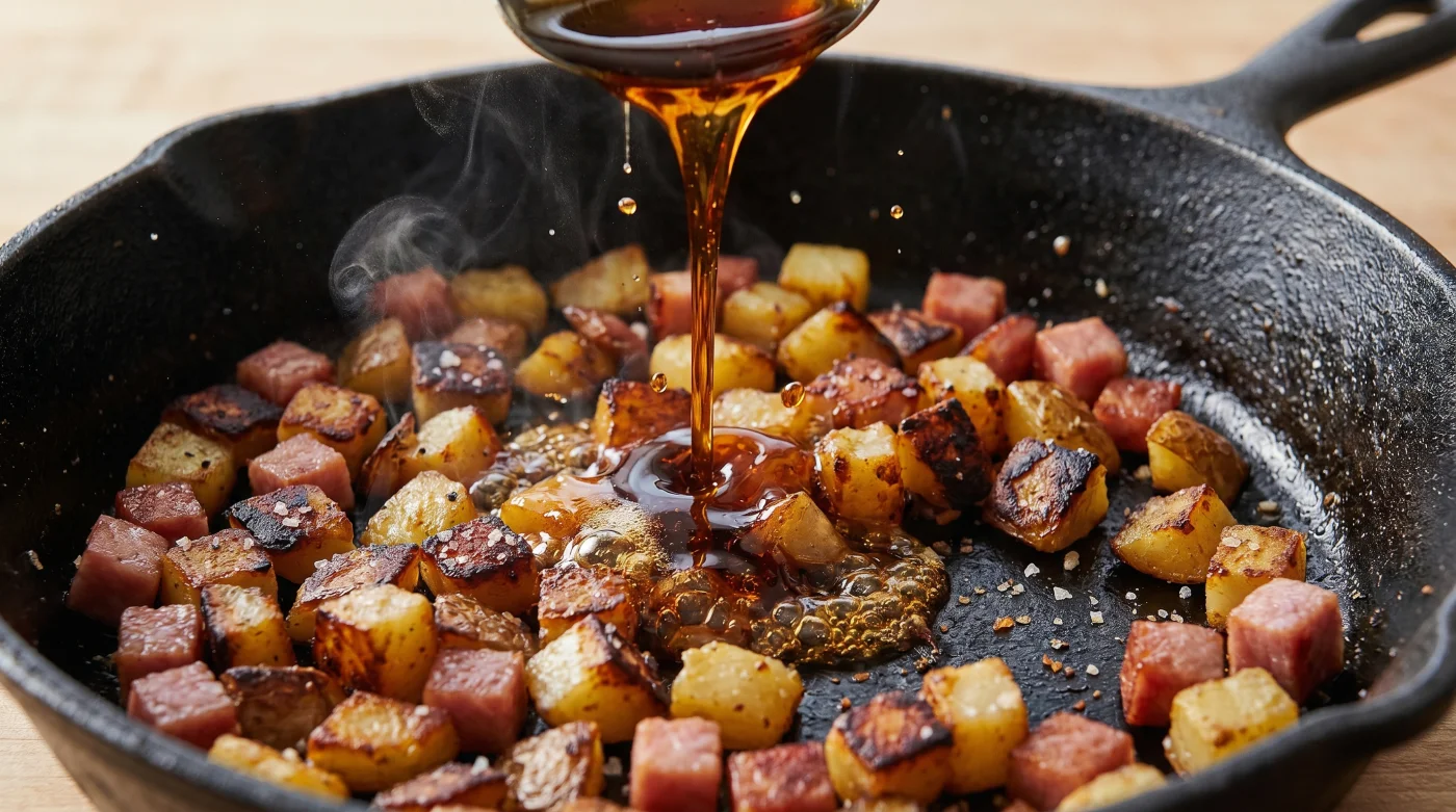 Mörk sirap är överlägsen eftersom den redan har en lätt bränd, fyllig karaktär som kompletterar köttets sälta. Ljus sirap eller strösocker ger ofta en för skarp och oönskad sötma som snabbt kan brännas till svart kol i pannan.Varför blir min pyttipanna grå och mosig trots hög värme?