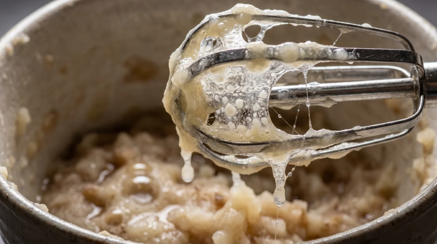 När du mosar potatisen för hand, med en stöt eller genom en press, separerar du försiktigt dessa celler från varandra. Men när du går till attack med en elvisp på över tusen varv i minuten, agerar metallbladen som små roterande knivar. De massakrerar cellväggarna på ett ögonblick, och stärkelsen väller ut fullständigt okontrollerat för att omedelbart binda ihop sig med vätskan till ett brutalt segt nätverk.