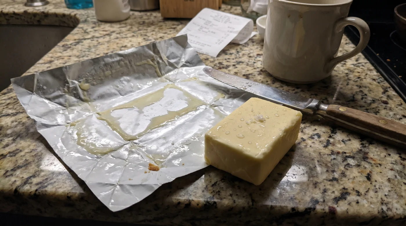 • Nollställ alltid vågen: Placera bunken på vågen och tryck på tara innan du hyvlar ner smöret. Ignorera förpackningens påtryckta streck helt, de är numera vilseledande guider.