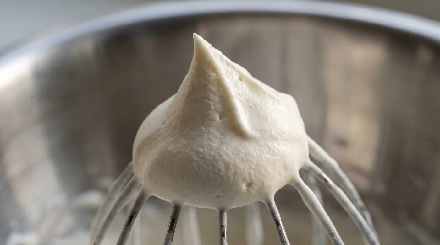 Du står där i köket, och ljudet av stål mot glas fyller rummet. Det är en monoton, nästan hypnotisk rytm som bygger upp förväntan. Framför dig i skålen förvandlas en flytande, vit spegel långsamt till mjuka, böljande toppar. Doften av söt, fet mjölk och en aning nyskrapad vanilj hänger tungt i luften. Du känner hur de närmaste trettio sekunderna avgör allt för din dessert. Gästerna pratar tyst i rummet intill, ovetande om dramaturgin som utspelar sig vid köksbänken.