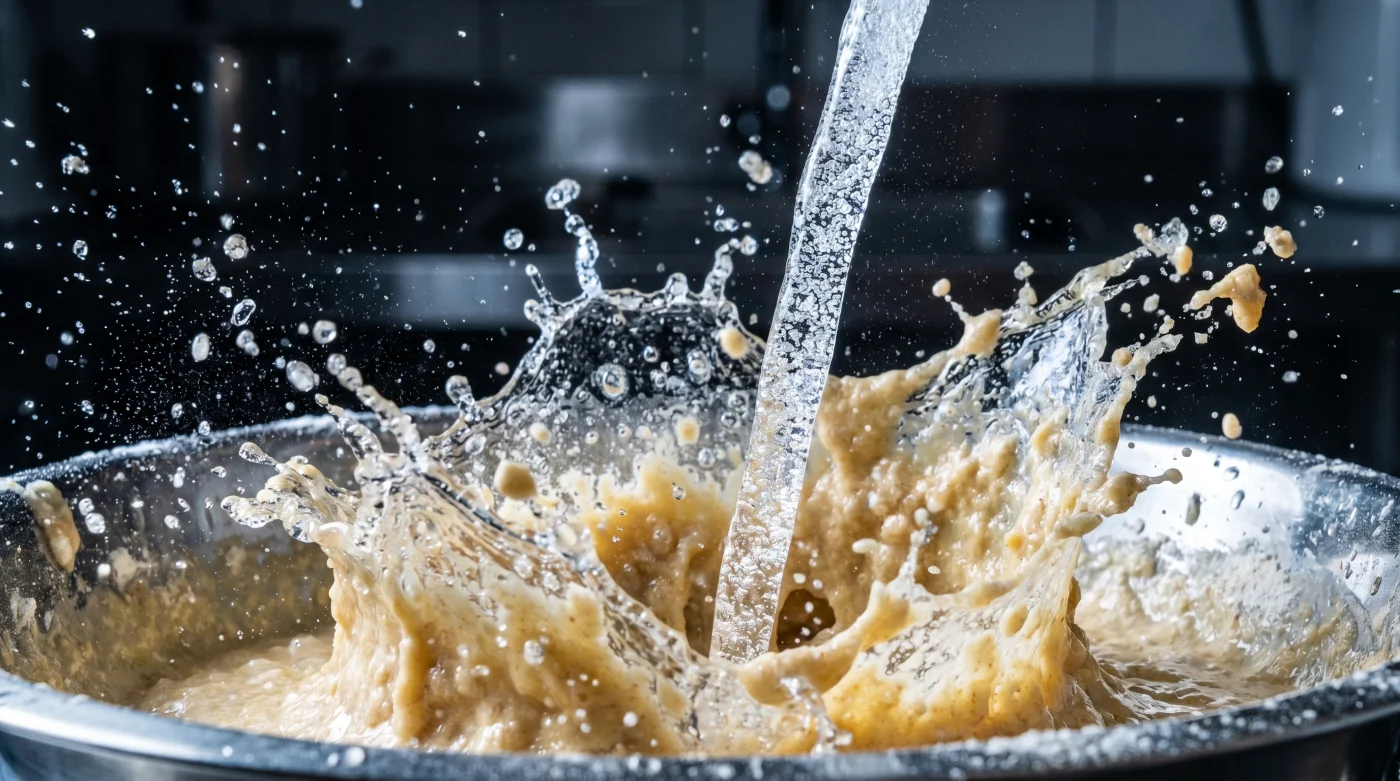 Här kommer den professionella hemligheten in i bilden. Det rör sig om en nästan fånigt enkel justering som vänder upp och ner på allt vi trodde vi visste om krispighet. Genom att byta ut en deciliter av mjölken mot iskallt mineralvatten ändrar du hela smetens fysiska struktur inifrån och ut.