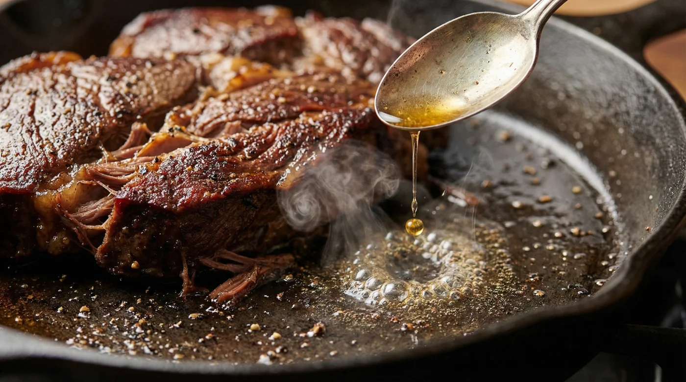 För att lyckas fullt ut med den här oortodoxa metoden krävs din totala närvaro vid spisen under några korta minuter. Det är i de allra minsta detaljerna, i det tysta men kraftfulla samspelet mellan het metall, smält fett och skarp syra, som själva magin uppstår. Du behöver aldrig stressa, bara vara uppmärksam på dofterna och lyssna noga på ljuden från pannan.