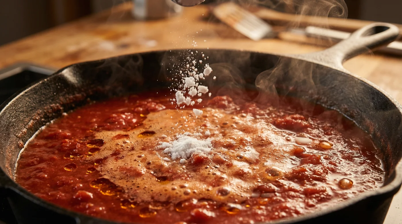 Tänk om tricket för en genuint fyllig tomatsås inte handlar om att maskera smakerna, utan om att faktiskt förändra dem från grunden. Hemligheten står förmodligen redan i ditt skafferi, undangömd bakom mjölet och pärlsockret. En försiktig nypa vanlig bikarbonat är allt som krävs för att skriva om reglerna för din vardagsmatlagning.