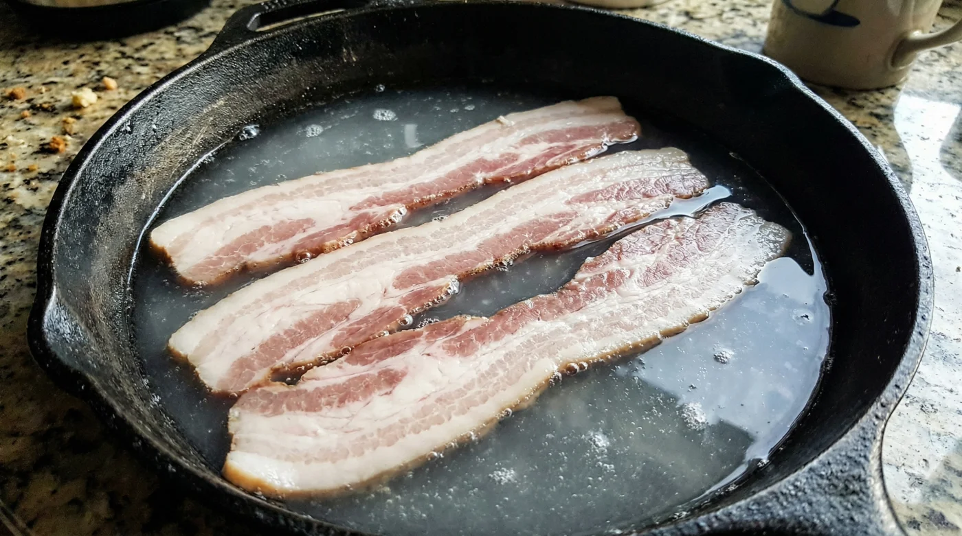 Du har lärt dig att en bra stekyta kräver hög värme från start. Det är sant för en rejäl biff, men bacon fungerar annorlunda. Att slänga ner kalla skivor av rimmat fläsk i en brännhet panna är som att be om ett krig. Köttet drar ihop sig i chock, fettet spricker och vätskan inuti skivorna förångas våldsamt – det är just denna plötsliga reaktion som orsakar det intensiva stänket över halva ditt kök.