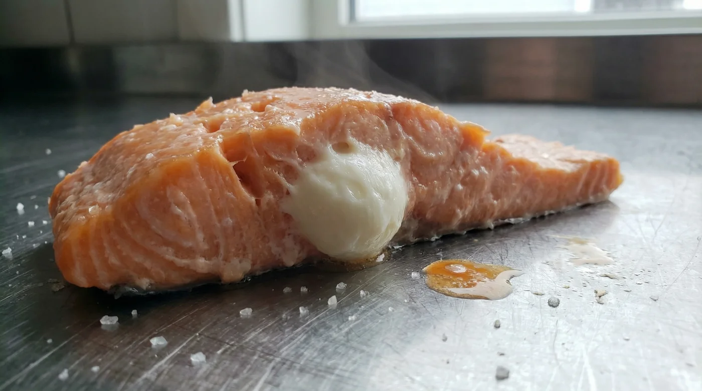 Det där vita, gummiliknande proteinet som tränger ut kallas albumin. Det är helt ofarligt och smakar egentligen ingenting, men det förstör brutalt hela upplevelsen av en vackert upplagd tallrik. Många hemmakockar drar slutsatsen att de köpt en lax av dålig kvalitet, att den legat för länge i kyldisken, eller att stekpannan varit för varm. Ofta försöker man rädda situationen genom att desperat skrapa bort det vita med kanten av en stekspade, vilket bara trasar sönder fiskens yta ännu mer. Men sanningen är en helt annan. Tänk på den färska laxfilén som en kall, hårt knuten tvättsvamp. När värmen från pannan eller ugnen plötsligt slår till, reagerar muskelfibrerna med en våldsam sammandragning. De krymper i ren panik och kramar handlöst ur sig sin interna vätska och sina lösa proteiner. Resultatet är oundvikligt: fult vitt protein blöder ut och koagulerar omedelbart på ytan. Lösningen är dock inte att sänka värmen till en frustrerande, ineffektiv nivå. Lösningen är att lugna ner svampen innan den överhuvudtaget möter elden.