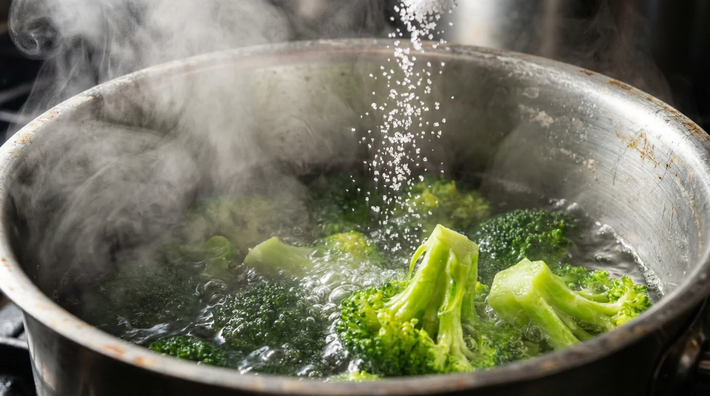 Du känner igen ljudet. Vattnet stormkokar i kastrullen med ett dovt, rytmiskt dån som fyller det annars tysta köket. På skärbrädan framför dig ligger ett stånd färsk broccoli. Du har precis betalat dina tjugo kronor för denna perfekta, mörkgröna bukett i matbutiken. Kniven skär genom den spänstiga stjälken med ett tillfredsställande, krispigt ljud. Du kastar ett par nävar grovsalt i det rullande vattnet, precis som du alltid har fått lära dig. Det är den eviga sanningen i alla kokböcker: salt är det enda som behövs för att koka gröna grönsaker. Du sveper ner de noggrant skurna buketterna i det heta badet och sätter på locket.