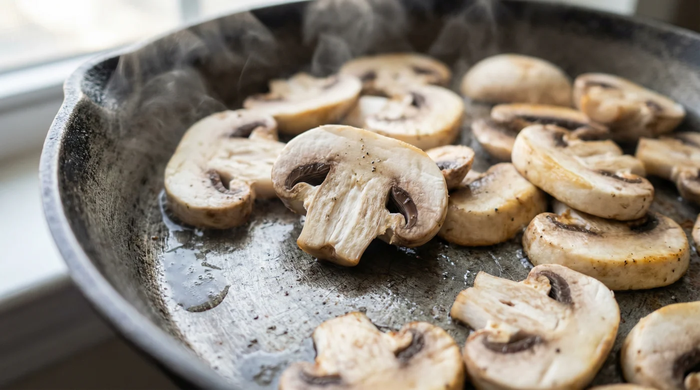 Du står vid spisen, förväntansfull. Du har skivat de där vita, fasta champinjonerna och lagt en rejäl klick smör i gjutjärnspannan. Det fräser till lovande. Men sedan händer det som alltid händer. Fräsandet övergår i ett dämpat, blött puttrande. Svampen släpper ifrån sig en gråaktig vätska, och plötsligt kokar dina champinjoner i sin egen saft blandad med smält fett. Resultatet? En mosig, nästan gummiartad besvikelse istället för den där djupt gyllenbruna, köttiga delikatessen du såg fram emot.