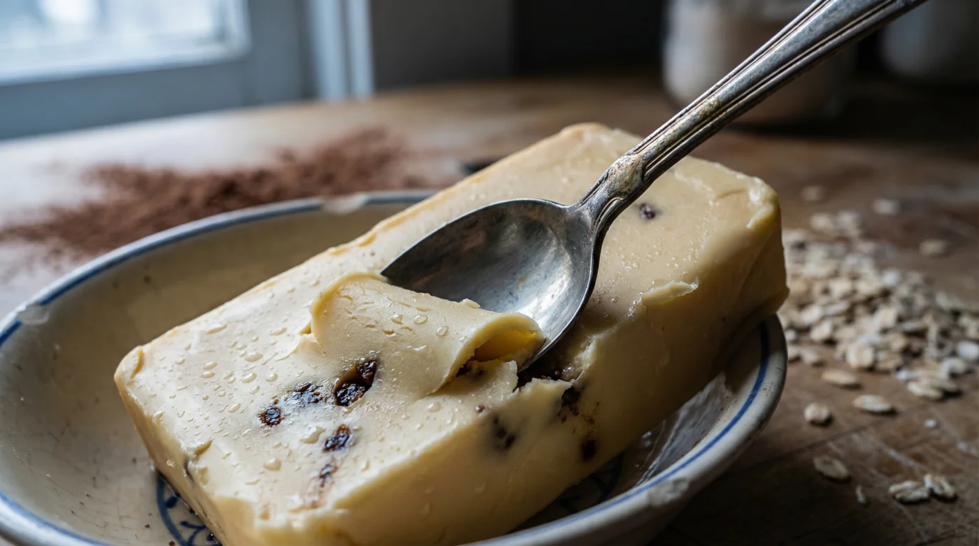 Här gör många sitt första och sista misstag. De häller det smälta smöret direkt över havregrynen. Gör inte det. Då suger grynen åt sig allt fett och du står kvar med en oljig, kompakt massa som andas genom en kudde av fett. Du måste vänta tills smöret stelnar och återfår en mjuk, krämig konsistens, likt en salva.
