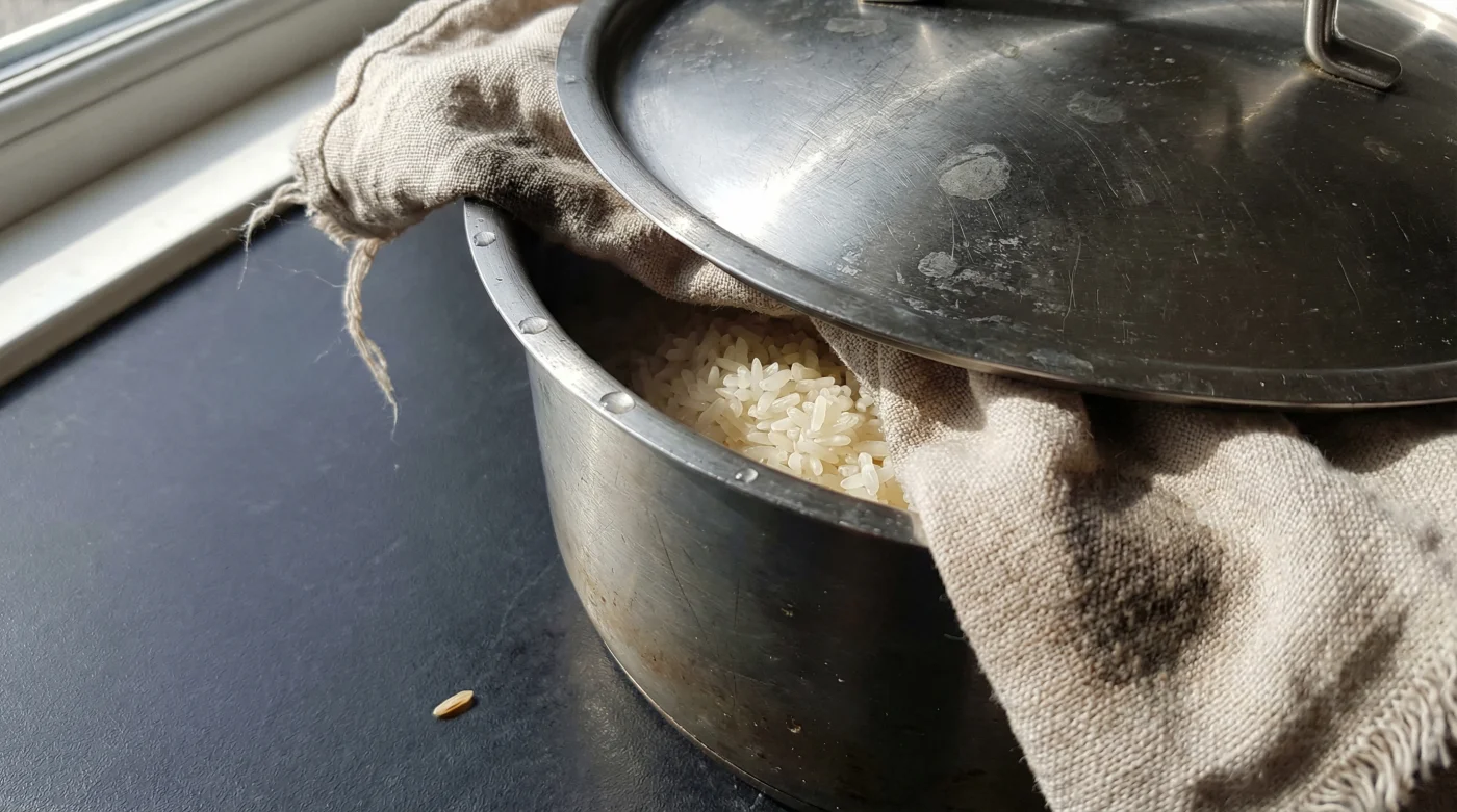 Det grundläggande felet sitter sällan i dina proportioner mellan ris och vatten. Det handlar om fuktens kretslopp inuti kastrullen under de sista, avgörande minuterna. Att bara dra kastrullen från värmen och låta locket ligga kvar skapar ett mikroklimat som aktivt motarbetar dig. Kastrullen blir ett stängt ekosystem där ångan stiger, träffar det svalare metallocket, kondenserar till stora vattendroppar och faller tillbaka rakt ner över de översta lagren av maten. Resultatet är en ojämnt tillagad bas där botten kan vara i princip perfekt, men toppen är helt dränkt och mosig.