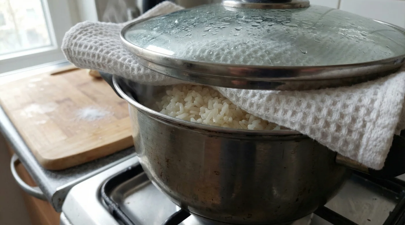 Det grundläggande felet sitter sällan i dina proportioner mellan ris och vatten. Det handlar om fuktens kretslopp inuti kastrullen under de sista, avgörande minuterna. Att bara dra kastrullen från värmen och låta locket ligga kvar skapar ett mikroklimat som aktivt motarbetar dig. Kastrullen blir ett stängt ekosystem där ångan stiger, träffar det svalare metallocket, kondenserar till stora vattendroppar och faller tillbaka rakt ner över de översta lagren av maten. Resultatet är en ojämnt tillagad bas där botten kan vara i princip perfekt, men toppen är helt dränkt och mosig.