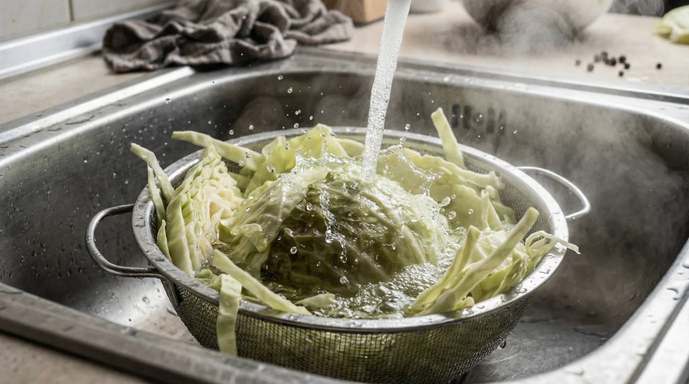 Ättika (12%) är kraftfullt. Justera balansen genom att tillsätta en halv tesked strösocker i marinaden, vilket rundar av de vassaste syrliga topparna.Måste jag skölja kålen kallt efter varmvattnet?