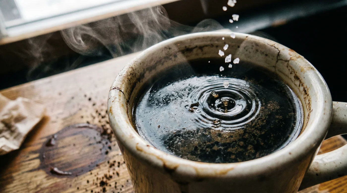 Lösningen på en överväldigande bitter och sträv kopp kaffe ligger nämligen inte i överdriven sötma. Den ligger i det mest fundamentala elementet vi har för att styra smak: bordssaltet.