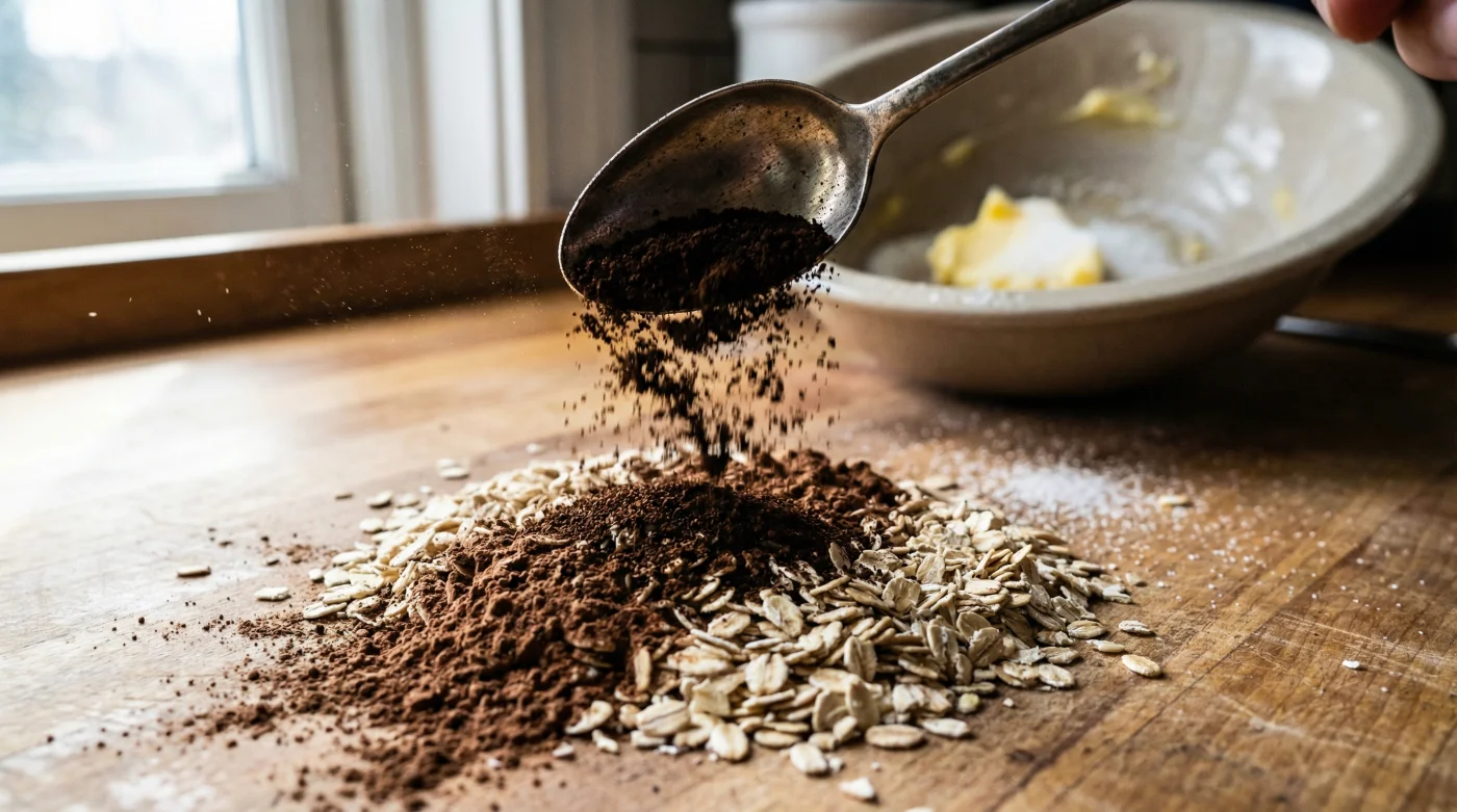 Blanda detta mörka pulver direkt med kakaon och vaniljsockret innan du vänder ner det i smöret. Det är exakt här magin sker. Fetterna i det mjuka smöret kapslar in espressodammet och bär med sig smakämnena direkt till dina smaklökar. Espresson fungerar som en megafon för kakaon, den tvingar fram de nötiga, dova tonerna i chokladen utan att själv ta över showen. Det är en tyst överenskommelse mellan två kraftfulla smaker.