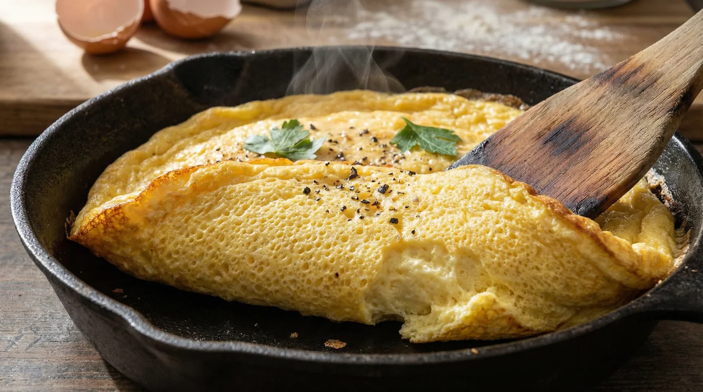 Här inträffar ett avgörande perspektivskifte i din matlagning. Det som alltid framstått som en tråkig begränsning – att enbart använda ägg och en nypa salt – är i själva verket din absolut största fördel. Att helt utesluta mejeriprodukter bevarar proteinets delikata struktur och resulterar i en överlägset fluffigare panna. Du går från att spä ut råvaran till att maximera dess potential.