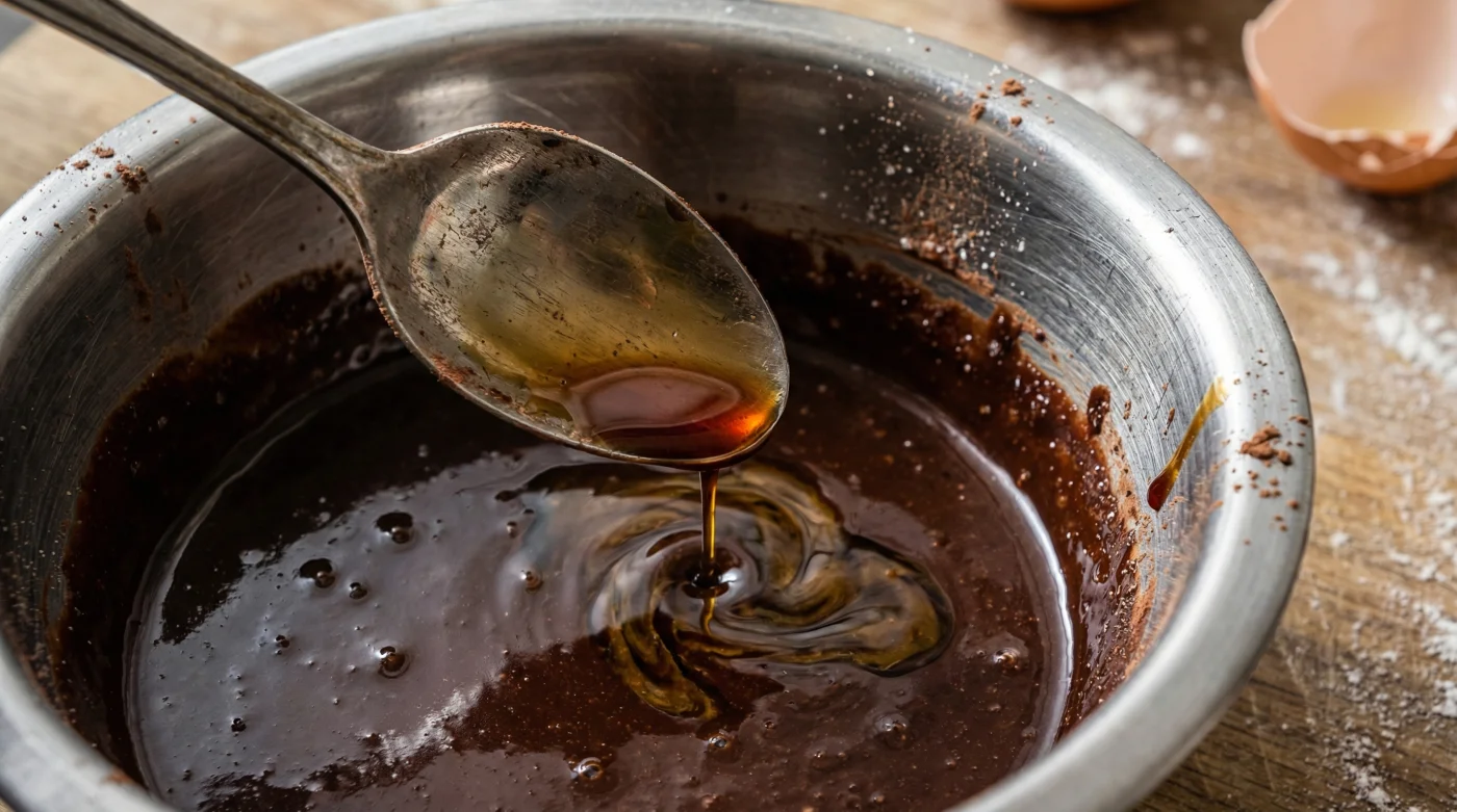 När du drar slickepotten genom den färdiga bunken ska smeten kännas tung, mörk och inbjudande. Du kommer snabbt att märka att färgen blir aningen djupare, nästan som mörk mahogny, mycket tack vare sojans naturliga pigment. Det är ett otroligt enkelt handgrepp som bokstavligen tar tre sekunder att utföra, men resultatet är ett fundamentalt skifte i upplevelsen. Smeten lägger sig tillrätta i den smorda formen med en påtaglig tyngd som lovar något långt utöver det vanliga.