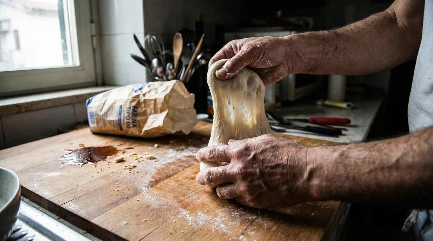 Det finmalda italienska mjölet har en helt unik glutenstruktur som är extremt känslig. Experterna är överens: Tipo 00-mjöl kräver halverad knådningstid jämfört med vanligt klassiskt svenskt vetemjöl. Om du kör degen i maskinen för länge blir den överarbetad, vilket resulterar i en stenhård skorpa istället för den där mjuka, luftiga och leopardmönstrade kanten vi alla drömmer om.