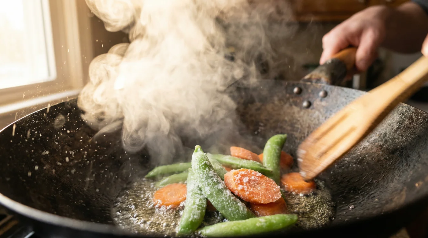 Att woka frysta grönsaker är som en obarmhärtig dialog mellan extrem kyla och skoningslös hetta. Din instinkt säger att frysta råvaror måste återgå till rumstemperatur för att kunna tillagas ordentligt. Det låter rimligt, men sanningen är att upptiningen är exakt det ögonblick då cellväggarna i grönsakerna kollapsar.