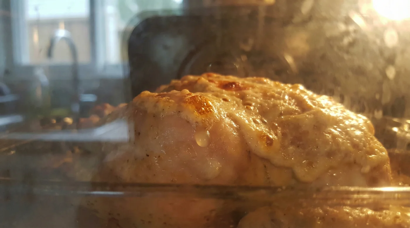 Majonnäs är rent tekniskt ett litet vardagsmirakel. Det är en stabil emulsion av äggulor och olja, bunden med lite syra. När denna tjocka blandning möter ugnens 200 grader händer något väldigt specifikt på ytan av kycklingbröstet. Till skillnad från rent fett som smälter bort, stelnar äggproteinerna. De bildar en tunn men oväntat stark barriär som stänger inne ångan och köttsafterna.