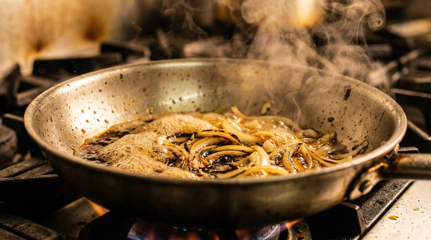 Hemligheten stavas Maillardreaktionen. Detta är den brytpunkt där aminosyror och sockerarter möts under värme och skapar nya, extremt komplexa smakämnen. Vanlig lök är full av naturligt socker, men cellväggarna är envisa och det tar tid att locka fram sötman med enbart låg värme. Här kliver den mörka sojasåsen in som en räddare i nöden. Den bär redan på en högkoncentrerad mängd aminosyror och fermenterade sockerarter. När dessa mörka droppar träffar den varma löken fungerar de som en tändhatt. Reaktionen startar omedelbart, istället för att du ska behöva vänta ut lökens egna långsamma nedbrytningsprocess.