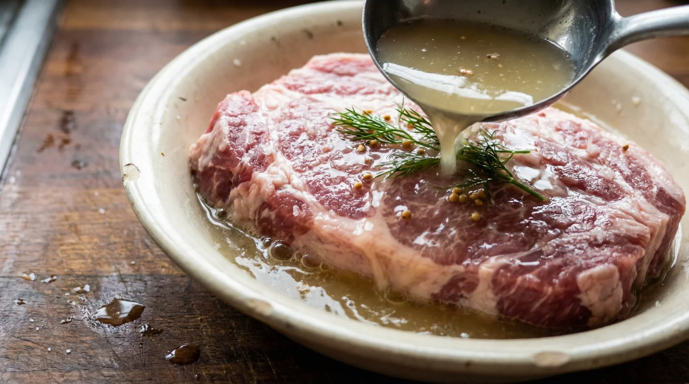 Vi har blivit lärda att se lagen som skräp, en biprodukt vars enda syfte var att hålla gurkorna vid liv. Men detta är en modern missuppfattning. För att förstå magin måste vi se på köttet som en spänd muskel, en knuten näve som vägrar slappna av. När köttet utsätts för värme drar fibrerna ihop sig och pressar ut fukten. Överbliven saltgurkslag fungerar här som en kemisk kram. Den övertalar fibrerna att släppa taget.