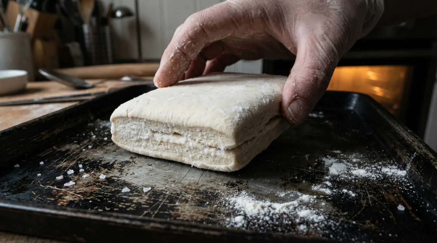 Att djupt förstå varför din frysta smördeg måste vara just stenhård innan gräddning ger en märklig form av mental ro. Det handlar om att släppa det ständiga, mänskliga behovet av att kontrollera materialet med mildhet och värme. Du lär dig istället att fullt ut respektera råvarans sanna, fysiska natur. Det är inte du som, med dina bara händer, ska lyfta de tunna lagren till ett fluffigt, perfekt moln; det är den exakta vetenskapliga kombinationen av extrem kyla och extrem värme som tyst gör hela det tunga arbetet åt dig.
