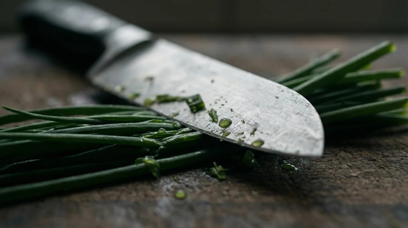 När du sedan smakar på maten möts du inte av den där lätta, somriga friskheten du hade förväntat dig. Istället känner du en skarp, nästan metallisk beska som biter sig fast och tar över hela gommen. Du kanske tror att gräslöken var gammal, men problemet ligger inte i råvaran. Det ligger rakt i handen på dig. Felet sitter i knivseggen.