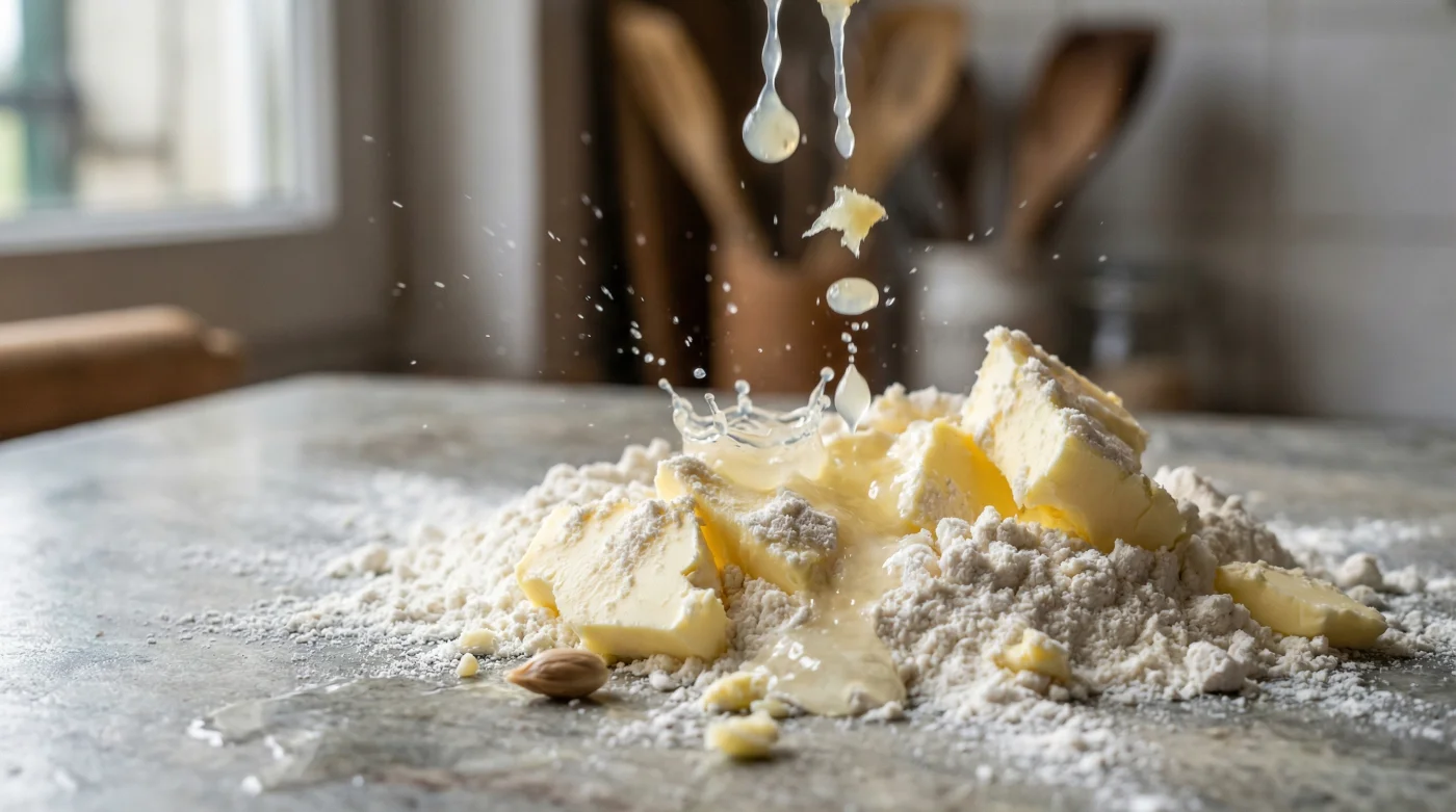 Genom att byta ut en del av vätskan mot citronsaft stör du aktivt denna bindningsprocess. Proteinerna förlorar sin förmåga att haka fast i varandra på ett effektivt sätt. Du tvingar degen att förbli porös och skör, vilket är exakt den miljö som krävs för att skapa hundratals små luftfickor när smöret sedan smälter i den varma ugnen. Ångan från smöret trycker upp de oförbundna mjöllagren. Det handlar inte om magi, det är rent och skärt kökshantverk baserat på enkel kemi.