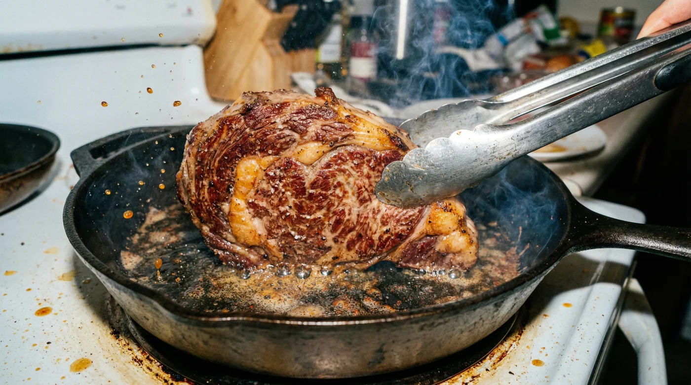 Vi måste skifta perspektiv. Tänk dig stektången som en naturlig förlängning av din egen hand, och pannans värme som en puls du måste samarbeta med. Genom att vända ditt kött kontinuerligt skapar du effekten av ett rotisseri i miniatyr, mitt i din egen stekpanna. Värmen får aldrig chansen att tränga för djupt och skoningslöst in från ett enda håll.