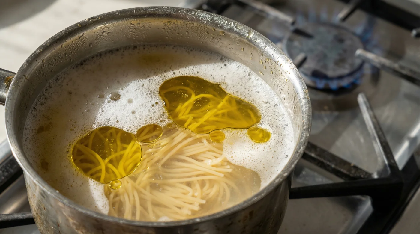 Att koka pasta handlar om friktion och ytor. Det finns en spridd missuppfattning att oljan i vattnet smörjer stråna medan de kokar, men enkel köksfysik berättar en helt annan historia. Det är som att försöka måla med vattenfärg på en nyvaxad bil. Oljan och vattnet hatar varandra och kommer aldrig att blanda sig. Under de minuter din spagetti snurrar runt i det heta vattnet gör oljan exakt ingenting. Den flyter bara tyst och overksam uppe vid ytan.
