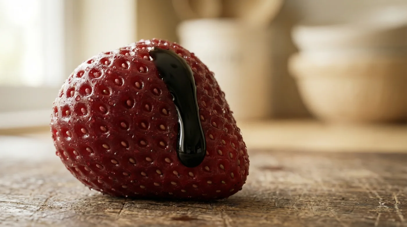 Det klassiska misstaget vi gör med syrliga bär är att vi försöker kväva beskan under ett tungt täcke av sötma. Det är som att försöka överrösta en falsk ton med en bastrumma. Men socker tar inte bort det beska; det skapar bara en klumpig barriär i munnen. Lösningen ligger i stället i en mörk, trögflytande flaska. Några få droppar av en högkvalitativ balsamvinäger fungerar nämligen inte som en maskering, utan som ett kemiskt förstoringsglas som fångar upp fruktsötman.